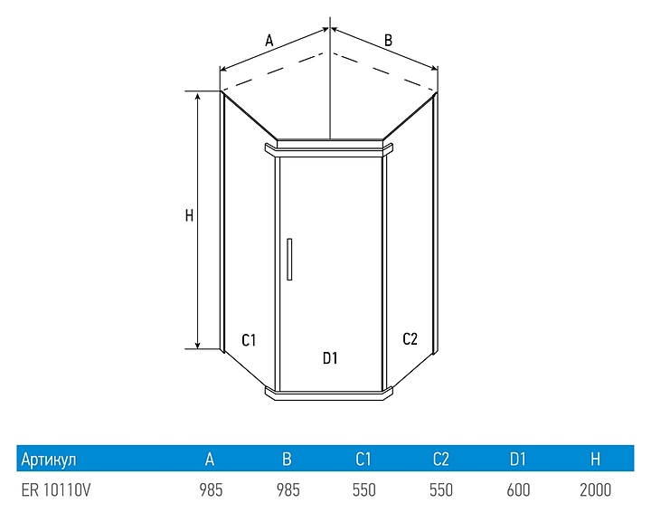 Душевой уголок Erlit ER10110V-C4 100x100x200 см