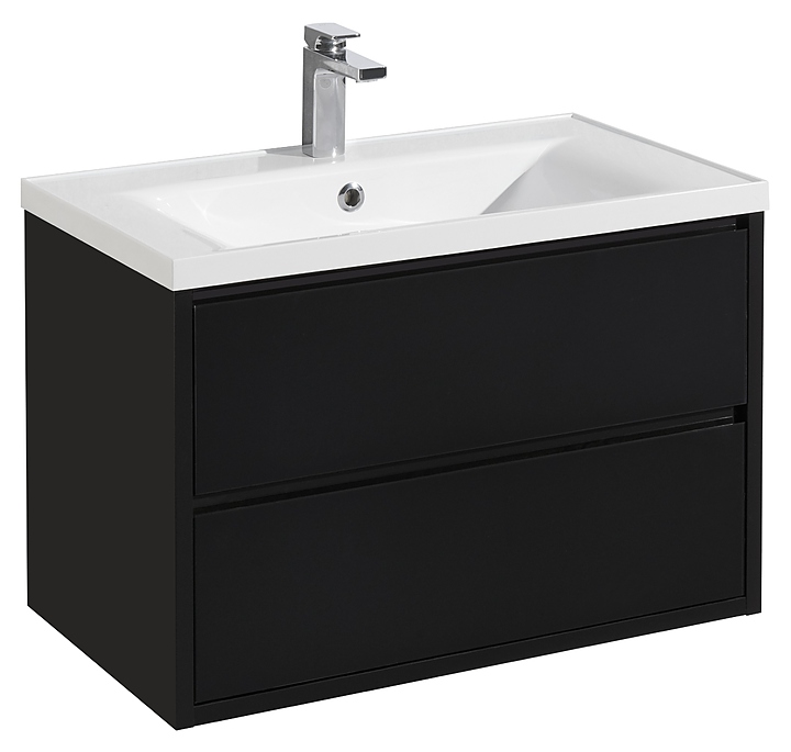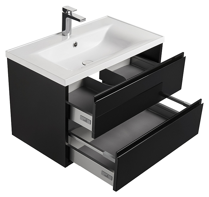 Тумба AQUATON Римини 80 1A226701RN950 NEW выполнена в современном стиле. Благодаря подвесной конструкции изделие не занимает много места и обеспечивает легкую уборку в ванной комнате. Модель оснащена двумя вместительными выдвижными ящиками сс системой мягкого закрывания. Корпус изделия выполнен из влагостойкой ЛДСП, а фасад из высококачественной МДФ и окрашены чёрной глянцевой полиэфирной краской ультрафиолетового отверждения, которая обеспечивает изделию привлекательный внешний вид, а также износостойкость и долговечность. Тумба используется вместе с раковинами Victoria-N Unik 732799C000, Премьер 80 1A702831PR010 и Премьер М 80 1A70493KPR010. Комплектация: