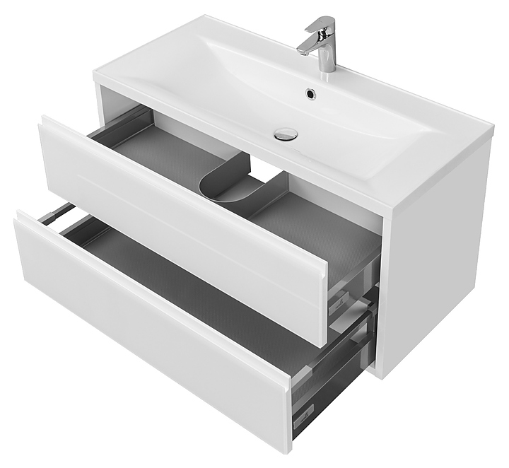 Тумба AQUATON Римини 100 1A232801RN010 NEW выполнена в современном стиле. Благодаря подвесной конструкции изделие не занимает много места и обеспечивает легкую уборку в ванной комнате. Модель оснащена двумя вместительными выдвижными ящиками сс системой мягкого закрывания. Корпус изделия выполнен из влагостойкой ЛДСП, а фасад из высококачественной МДФ и окрашены белоснежной глянцевой полиэфирной краской ультрафиолетового отверждения, которая обеспечивает изделию привлекательный внешний вид, а также износостойкость и долговечность. Тумба используется вместе с раковинами Премьер М 100 1A70473KPR010 и Премьер 100 1A702531PR010. Комплектация: