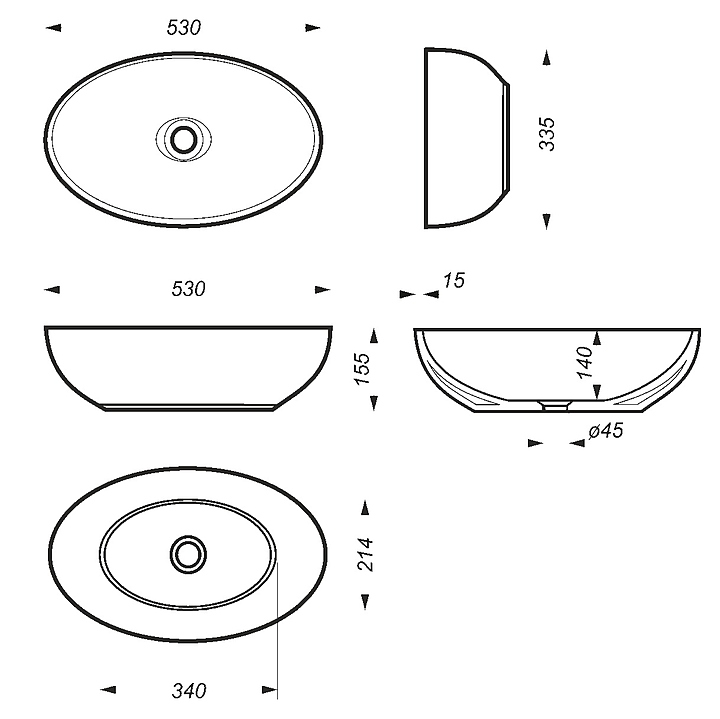 Раковина накладная SANITA LUXE Ringo RNGSLWB01 53x33 см, керамика
