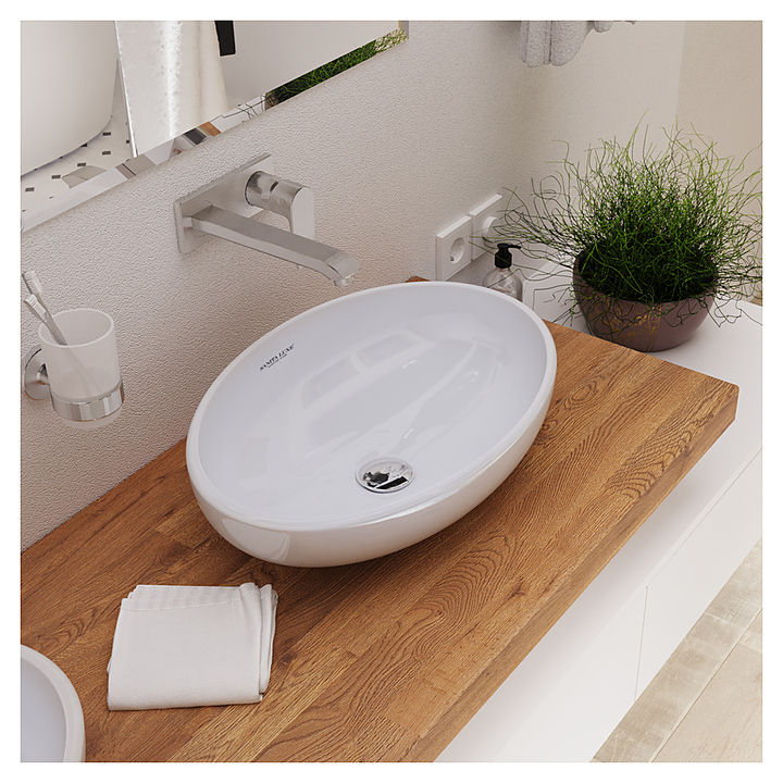 Накладная раковина SANITA LUXE Ringo RNGSLWB01 популярной российской компании легко вписывается в интерьер любой ванной комнаты. Изделия серии Ringo отличаются формой выточенного водой камня. Накладная конструкция изделия позволяет произвести быстрый монтаж, экономит место и обеспечивает изящный внешний вид. Изделие выполнено из санфарфора, который обладает повышенной прочностью, устойчив к негативным внешним факторам, таким как грязь и запахи, а так же способен долгое время сохранять идеальную белизну. В комплект поставки входят крепления для установки. Смеситель в комплект поставки не входит и приобретается отдельно. Особенности: