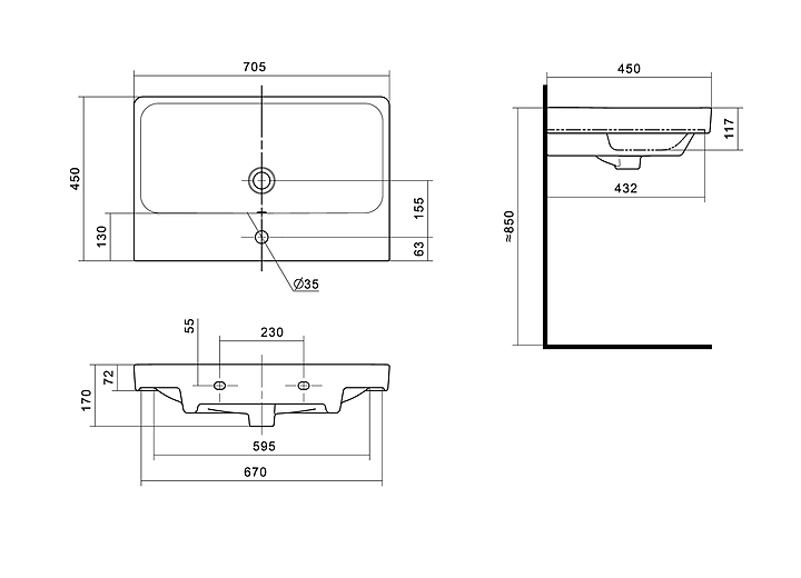 Раковина Santek Адриана 70 1WH501628 выполнена в современном стиле. Встраиваемая конструкция позволяет экономить место в ванной комнате для хранения туалетных принадлежностей. Модель оснащена широкой задней поверхностью, на которой можно размещать необходимые аксессуары для ежедневного использования, а глубокая удобная чаша препятствует разбрызгиванию воды. Изделие выполнено из керамики, которая обладает повышенной прочностью и устойчивостью к негативным внешним факторам, а так же долгое время сохраняет идеальную белизну и не впитывает запахи и грязь. Раковина используется вместе с тумбами Сканди 70 1A251801SDB20 и Сканди 70 1A251801SDZ90. Смеситель в комплект поставки не входит и приобретается отдельно. Особенности: