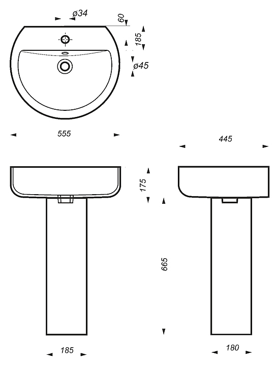 Раковина пьедестальная SANITA LUXE Best Luxe BSTSLWB01 55x44 см, без крепления, керамика