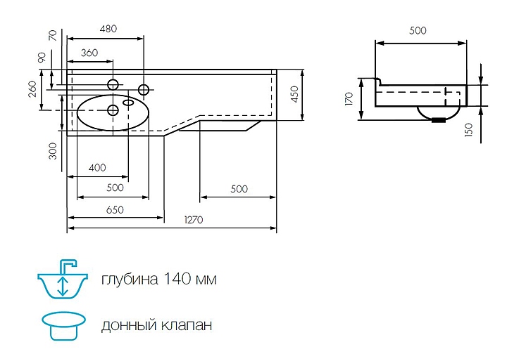 Раковина AQUATON Отель 2/127 1A70123WOT01R выполнена в современном стиле. Благодаря подвесной конструкции раковина не занимает много места, что позволяет еще больше экономить пространство в небольшой ванной комнате. Возвышенность на задней части раковины обеспечивает лучшее прилегание к зеркалу для облегчения ухода. Модель оснащена широкой задней и боковой левой поверхностями, на которых можно размещать необходимые аксессуары для ежедневного использования и полотенцедержателем. Изделие выполнено из литого мрамора, состоящего из мраморной крошки в сочетании с полиэфирным смолами, обладающего повышенной прочностью и устойчивостью к негативным внешним факторам. Смеситель в комплект поставки не входит и приобретается отдельно. Комплектация: