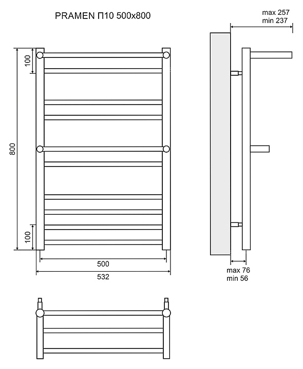 Полотенцесушитель водяной LEMARK Pramen П10 LM33810 50x80 см, нерж. сталь