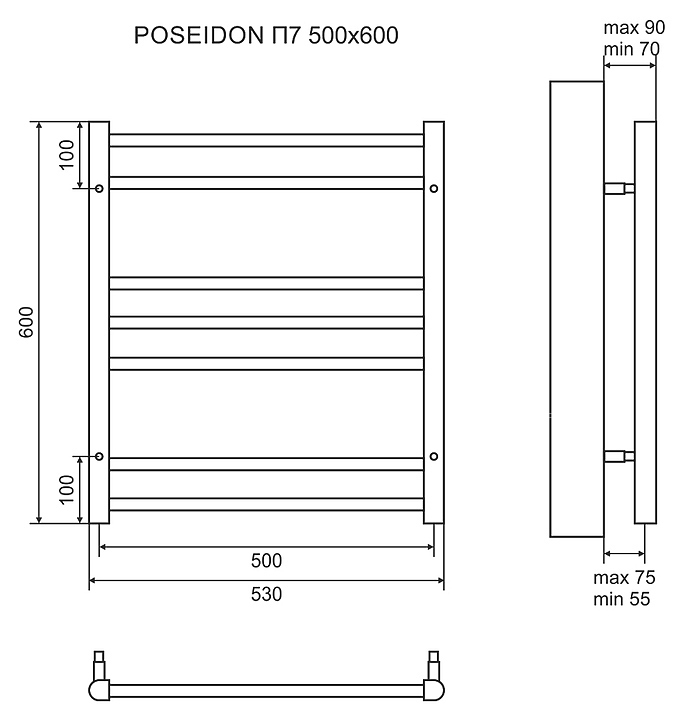 Полотенцесушитель электрический LEMARK Poseidon П7 LM42607E 50x60 см, нерж. сталь
