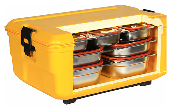 Термобокс AVATHERM 200 предназначен для перемещения горячих или холодных блюд и хранения при идеальной температуре на предприятиях общественного питания и в больничных пищеблоках. Модель оснащена съёмной крышкой с двумя регулируемыми замками. Корпус и двойная стенка выполнены из пищевого полипропилена, слой изоляции - из вспененного полиуретана CFC-free. Особенности: