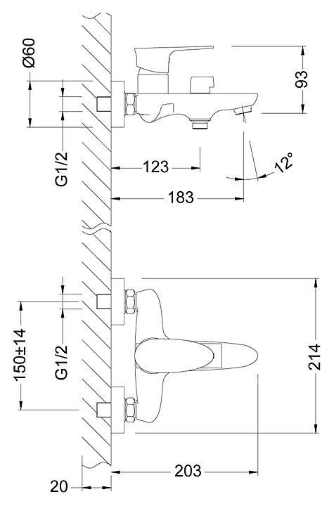 Смеситель для ванны и душа LEMARK Nero LM0214C с коротким изливом, хром