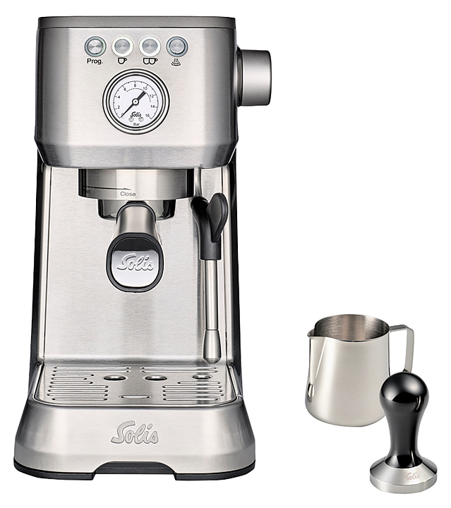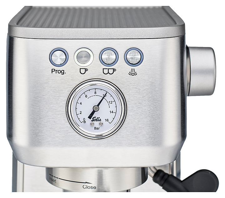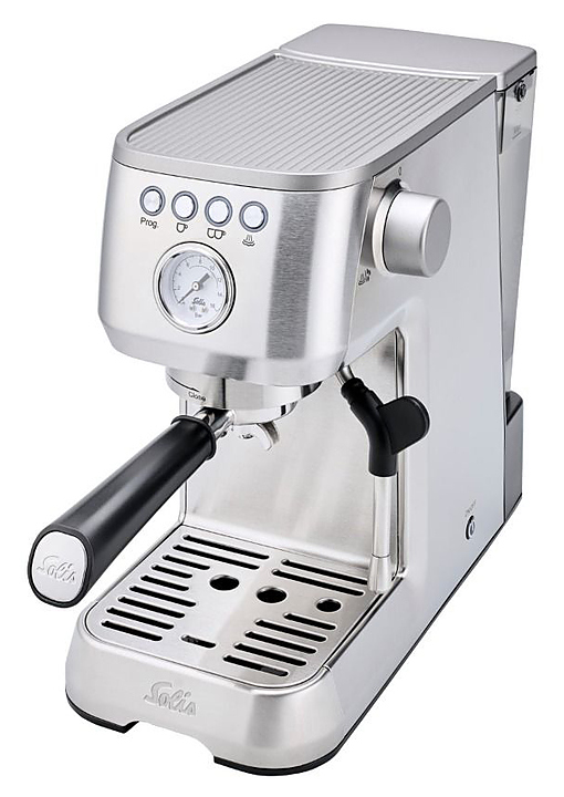 Кофемашина Solis Barista Perfetta Plus silver используется в кофейнях, барах, ресторанах и в домашних условиях для приготовления кофе и напитков на его основе. Модель оснащена манометром для контроля и управления давлением экстрактции. Корпус и аксессуары выполнены из нержавеющей стали. Комплектация: