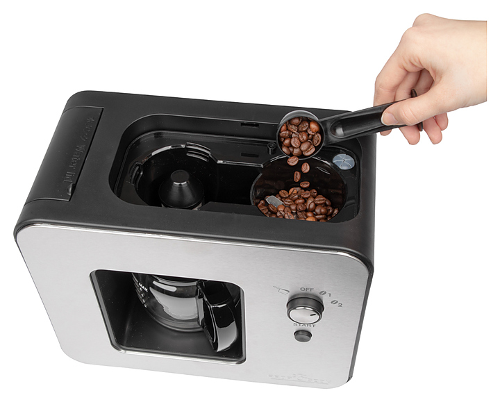Капельная кофеварка Profi Cook PC-KA 1152 применяется на кухне, в кафе и ресторанах, корпоративной столовой для приготовления кофе и напитков на его основе. Модель оснащена съемными для легкой очистки кофемолкой и заварочным блоком. Корпус выполнен из пластика, передняя панель - из нержавеющей стали, кувшин - из стекла. В комплект поставки входит щетка для очистки, постоянный нейлоновый фильтр и мерная ложка для кофе. Особенности: