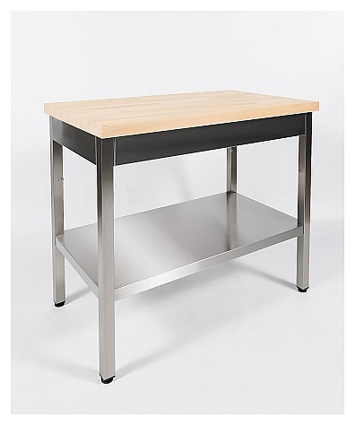 Кондитерский стол Restoinox СПК-15/8-П предназначен для разделки и обработки пищевых продуктов, а также для расстановки и хранения посуды и кухонного инвентаря на предприятиях общественного питания и торговли. Модель оснащена сплошной полкой, усиленной ребром жесткости из нержавеющей стали Aisi 430. Ножки выполнены из квадратной трубы 40х40 мм из нержавеющей стали Aisi 430, полка - из нержавеющей стали Aisi 430, столешница - из бука. Особенности: