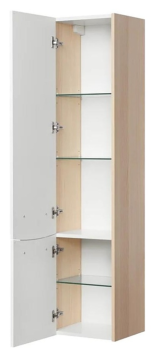 Подвесной пенал AQUATON Инфинити 1A192303IFSCL выполнен в современном стиле. Благодаря подвесной конструкции модель не занимает много места, что позволяет экономить пространство в небольшой ванной комнате, а также облегчает уборку. Модель имеет гладкую поверхность без выступающих элементов и оснащена двумя дверками, за которыми находятся стеклянные полки для необходимых в ванной комнате принадлежностей. Корпус изделия выполнен из влагостойкой ЛДСП под натуральное дерево в цвет ясень коимбра, а фасады из высококачественной МДФ и окрашены в белый цвет с высокой степенью глянца полиэфирной краской ультрафиолетового отверждения, которая обеспечивает изделию привлекательный внешний вид, а также износостойкость и долговечность. Для установки понадобится набор крепежей для монтажа на стену. Комплектация:
