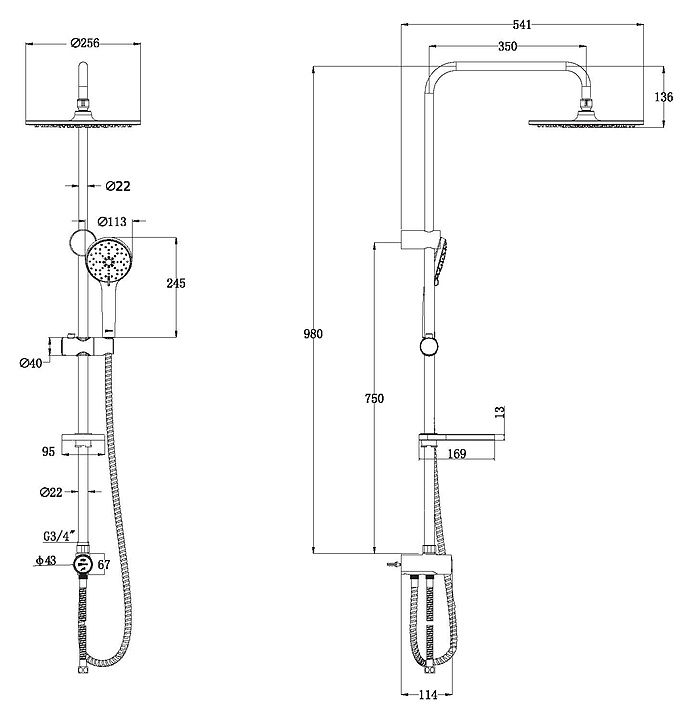 Размер верхнего душа 256 мм