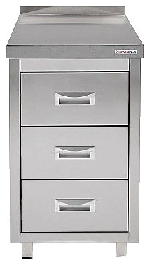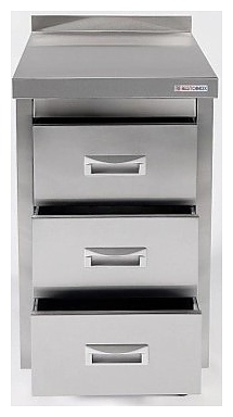 Производственный стол Restoinox СП3Я-6/7-Б предназначен для обработки продуктов питания, раскатки теста и хранения кухонного инвентаря, также для размещения малогабаритного оборудования на предприятиях общественного питания и торговли. Модель оснащена регулируемыми по высоте опорами и выдвижными ящиками. Ножки выполнены из квадратной трубы 40х40 мм из нержавеющей стали Aisi 430, корпус, рабочая поверхность и ящики - из нержавеющей стали Aisi 430, задняя стенка - из оцинкованной стали, столешница усилена листом ЛДСП. Особенности: