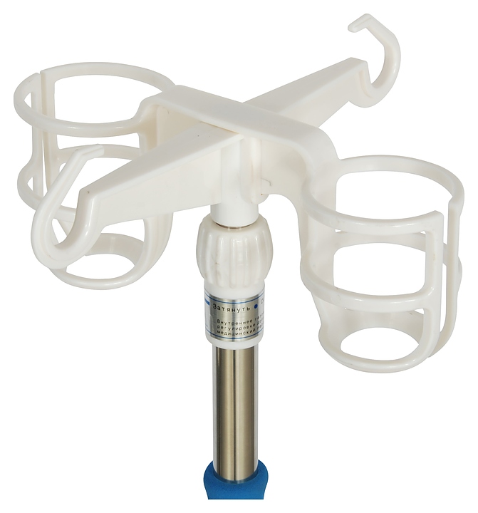 Трансфузионная стойка Med-Mos ММ-103 с РУ используется совместно с медицинскими кроватями Med-Mos в учреждениях здравоохранения для удержания емкостей при проведении внутривенных вливаний различных препаратов лежачим больным с проблемами опорно-двигательного аппарата и пациентов, которые проходят процесс реабилитации после перенесенных операций или тяжелых заболеваний. Модель оснащена тормозом на каждое колесо. Верхняя и нижняя часть стойки выполнена из металла, крючки, держатель и другие функциональные части - из пластика. Стойка поставляется с регистрационным удостоверением Минздрава РФ. Особенности: