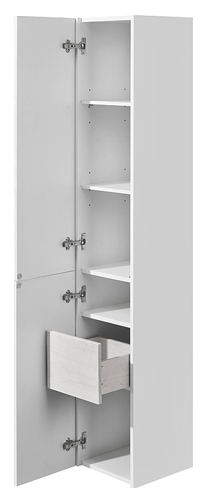 Подвесной пенал AQUATON Сакура 1A219903SKW8L выполнен в современном стиле. Благодаря подвесной конструкции модель не занимает много места, что позволяет экономить пространство в небольшой ванной комнате, а также облегчает уборку. Модель имеет гладкую поверхность без выступающих элементов и оснащена двумя дверками с системой push-to-open, за которыми находятся полки и выдвижной ящик для необходимых в ванной комнате принадлежностей. Корпус изделия выполнен из влагостойкой ЛДСП и окрашен в белый глянцевый цвет полиэфирной краской ультрафиолетового отверждения, а фасады в цвете ольха наварра, что обеспечивает изделию привлекательный внешний вид, а также износостойкость и долговечность. Для установки понадобится набор крепежей для монтажа на стену. Комплектация: