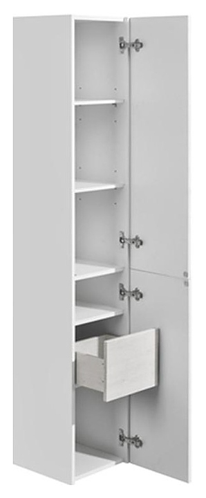 Подвесной пенал AQUATON Сакура 1A219903SKW8R выполнен в современном стиле. Благодаря подвесной конструкции модель не занимает много места, что позволяет экономить пространство в небольшой ванной комнате, а также облегчает уборку. Модель имеет гладкую поверхность без выступающих элементов и оснащена двумя дверками с системой push-to-open, за которыми находятся полки и выдвижной ящик для необходимых в ванной комнате принадлежностей. Корпус изделия выполнен из влагостойкой ЛДСП и окрашен в белый глянцевый цвет полиэфирной краской ультрафиолетового отверждения, а фасады в цвете ольха наварра, что обеспечивает изделию привлекательный внешний вид, а также износостойкость и долговечность. Для установки понадобится набор крепежей для монтажа на стену. Комплектация: