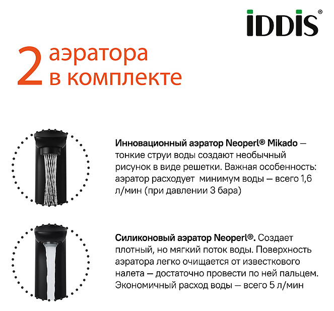 Смеситель для раковины IDDIS SLIDE SLIBLBTi01 выполнен в стиле модерн и используется для подачи и смешивания горячей и холодной воды. Модель устанавливается на раковину, оснащена кнопочным управлением и фиксированным изливом. Управление Push Control позволяет очень быстро и плавно регулировать подачу воды одним нажатием на кнопку, а температуру можно регулировать вращением ручки вокруг кнопки. Два технологичных аэратора Neoperl® легко создают разные потоки воды и легко очищаются от ржавчины и известковых отложений. Изделие выполнено из высококачественной латуни, которая отличается прочностью, долговечностью и устойчивостью к перепадам температур, с устойчивым к износу и эрозии комбинированным покрытием, благодаря которому не теряет презентабельный вид. В комплект поставки входит гибкая подводка, крепеж. Особенности: