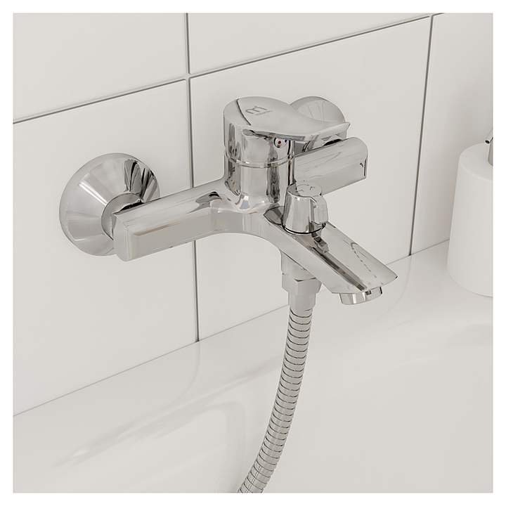 Смеситель для ванны и душа настенный Milardo Amplex AMPSB02M02 выполнен в современном стиле и используется для подачи и смешивания горячей и холодной воды. Модель оснащена однозахватным рычагом, характеризующимся плавной работой и поворотным девиатором. Ручное переключение ванна/душ позволяет использовать функцию "душ" даже при низком давлении воды. Аэратор гарантирует простое удаление водного камня. Изделие выполнено из высококачественной латуни, которая отличается прочностью, долговечностью и устойчивостью к перепадам температур, с устойчивым к износу и эрозии покрытием, благодаря которому не теряет презентабельный вид. В комплекте поставляется душевая лейка, шланг из нержавеющей стали, отражатели, настенный держатель. Особенности: