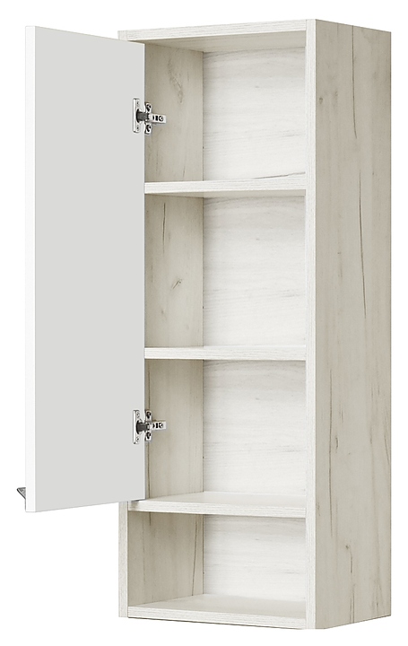 Шкафчик AQUATON Флай 1A237903FAX1L выполнен в современном стиле и отлично дополнит интерьер любой ванной комнаты. Благодаря подвесной конструкции модель не занимает много места, что позволяет экономить пространство в небольшой ванной комнате, а также облегчает уборку. Модель оснащена фасад-створкой, за которой расположены полки и открытой полкой в нижней части шкафа, где удобно разместить все необходимые в ванной комнате принадлежности. Изделие выполнено из влагостойкой ламинированной плиты в декоре дуб крафт, а фасады окрашены в белый цвет с высокой степенью глянца полиэфирной краской ультрафиолетового отверждения, что обеспечивает изделию привлекательный внешний вид, а также износостойкость и долговечность. Для установки понадобится набор крепежей для монтажа на стену. Комплектация: