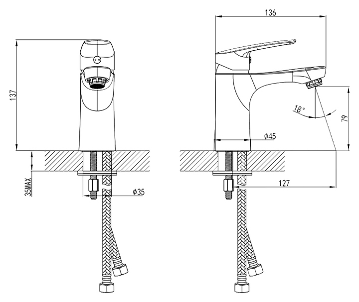 Смеситель для раковины Milardo Horizont HORSB00M01 выполнен в современном стиле и используется для подачи и смешивания горячей и холодной воды. Модель устанавливается на раковину, оснащена эргономичным рычагом, характеризующимся плавной работой и фиксированным изливом. Однозахватный тип управления позволяет очень быстро и плавно регулировать подачу воды одной рукой. Аэратор легко очищается от ржавчины и известковых отложений. Изделие выполнено из высококачественной латуни, которая отличается прочностью, долговечностью и устойчивостью к перепадам температур, с устойчивым к износу и эрозии комбинированным покрытием, благодаря которому не теряет презентабельный вид. В комплект поставки входит гибкая подводка, крепеж. Особенности:
