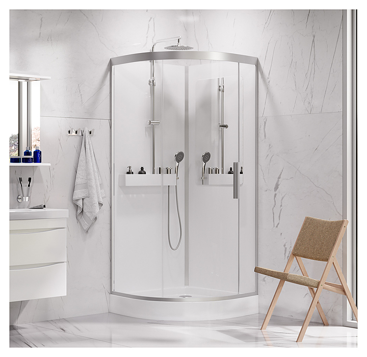 Душевая кабина AM.PM Like W80C-016-090MTA предназначена для использования в ванных комнатах. Благодаря угловой конструкции и поддону в форме четверти круга модель можно вписать даже в ванные комнаты небольшой площади. Модель оснащена полкой с интегрированным смесителем, переключателем, зеркалом и средним поддоном. Профиль выполнен из анодированного алюминия, который устойчив к окислению и появлению коррозии, обеспечивает герметичность и легкость конструкции, стенки- из закаленного стекла 6 мм. Поддон выполнен из акрила, устойчивого к механическим повреждениям, обладающего небольшим весом и повышенной шумоизоляцией. Особенности: