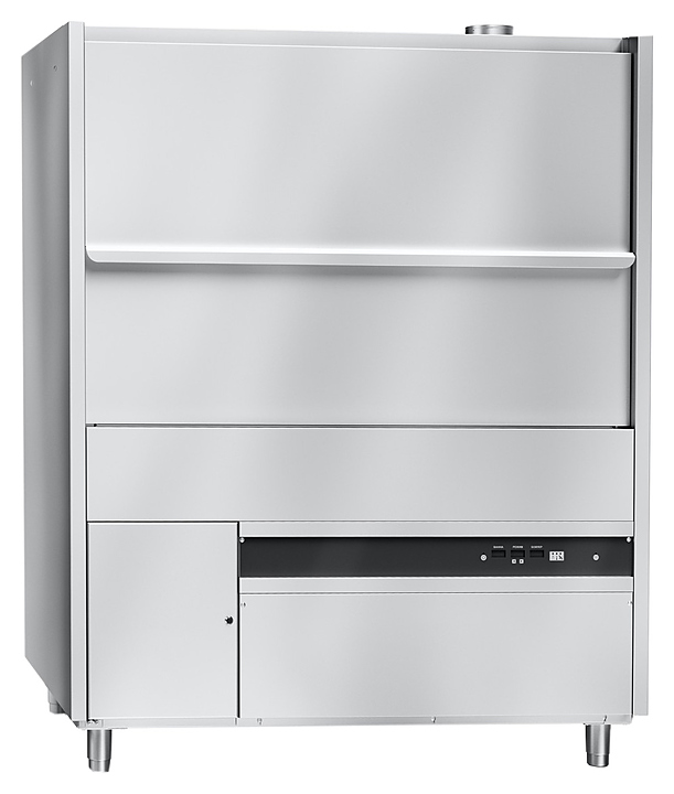 Котломоечная машина Abat МПК 130-65 используется на предприятиях общественного питания и торговли для мойки больших кастрюль, тарелок, стаканов, бокалов, столовых приборов, а также гастроемкостей и противней. Модель оснащена электронной панелью управления и ванной с скругленными углами, облегчающими гигиеническую уборку машины. Детали, контактирующие с водой, и облицовка выполнены из нержавеющей стали AISI 304, разбрызгиватели - из нержавеющей стали AISI 321. В комплект поставки входят выкатная тележка с роликами, съемные держатели № 20, 45, 65 и сетка для мойки легких предметов. Особенности: