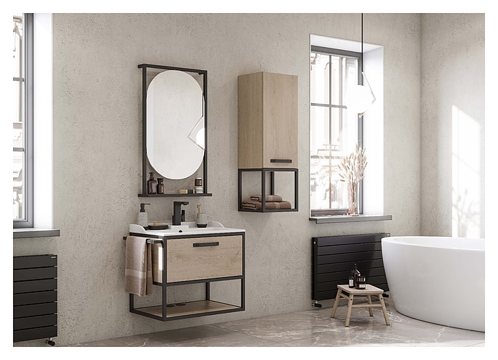 Тумба AQUATON Лофт Фабрик 80 1A242401LTDU0 выполнена в современном стиле. Благодаря подвесной конструкции изделие не занимает много места и обеспечивает легкую уборку в ванной комнате. Модель оснащена выдвижным ящиком с направляющими плавного выдвижения с ручкой, открытой нижней полкой и полотенцедержателем. Изделие выполнено из из влагостойкой ЛДСП в цвете дуб эндгрейн, что обеспечивает изделию привлекательный внешний вид, а также износостойкость и долговечность. Тумба используется вместе с раковинами Фабия 80 1A708031FB010 и Джой 3 1AX174WBXX000 на столешницу. Столешница в комплект поставки не входит и приобретается отдельно. Комплектация:
