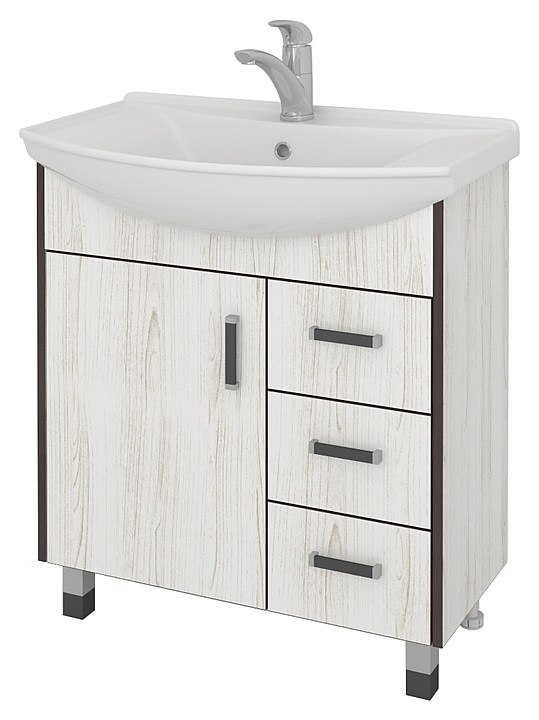 Тумба КАКСА-А Винтер 003792 выпонена в современном стиле и отлично дополнит интерьер любой ванной комнаты. Изделие устанавливается на ножки, что позволяет защитить конструкцию от воздействия влаги в случае намокания пола, а также облегчает уборку. Модель оснащена одной дверкой и тремя ящиками для хранения мелочей. Корпус и фасад изготовлены из ЛДСП толщиной 16 мм с древесной текстурой «Винтерберг», которое отличается долговечностью и экологичностью, а также предохраняет от загрязнения и защищает от влаги. Тумба используется вместе с раковинами Стиль 750. Особенности: