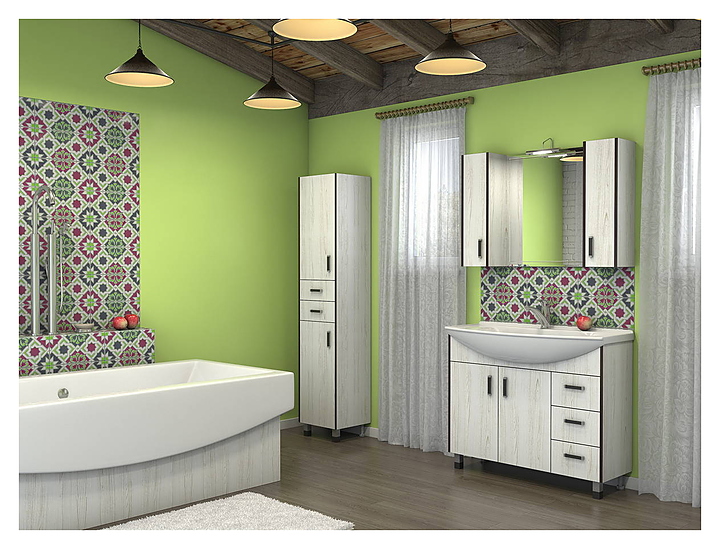 Тумба КАКСА-А Винтер 003777 выпонен в современном стиле и отлично дополнит интерьер любой ванной комнаты. Изделие устанавливается на ножки, что позволяет защитить конструкцию от воздействия влаги в случае намокания пола, а также облегчает уборку. Модель оснащена двумя дверками и тремя ящиками для хранения мелочей. Корпус и фасад изготовлены из ЛДСП толщиной 16 мм с древесной текстурой «Винтерберг», которое отличается долговечностью и экологичностью, а также предохраняет от загрязнения и защищает от влаги. Тумба используется вместе с раковинами Стиль 1050. Особенности: