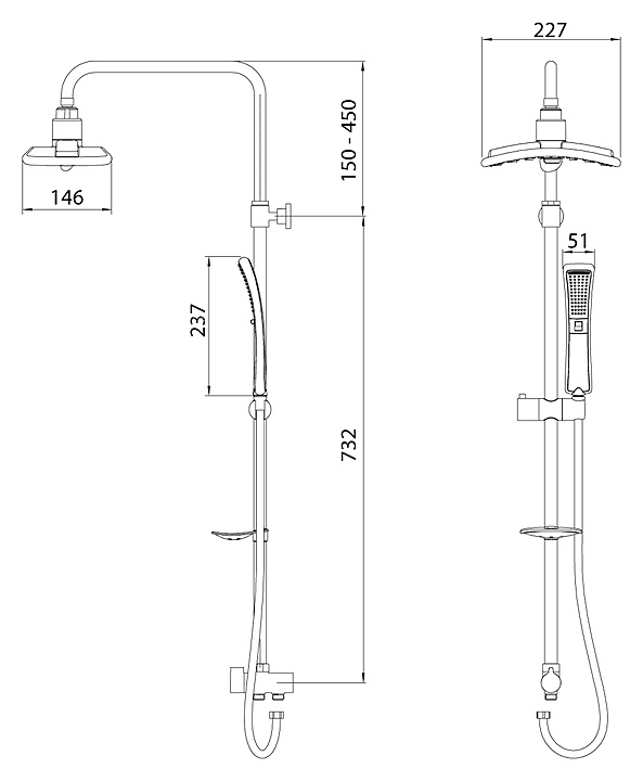Душевая стойка LEMARK LM8806C без смесителя, с верхней душевой лейкой "Тропический дождь", хром