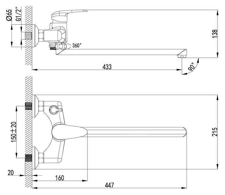 Смеситель для ванны и душа LEMARK Pramen LM3317C универсальный, с плоским изливом, хром