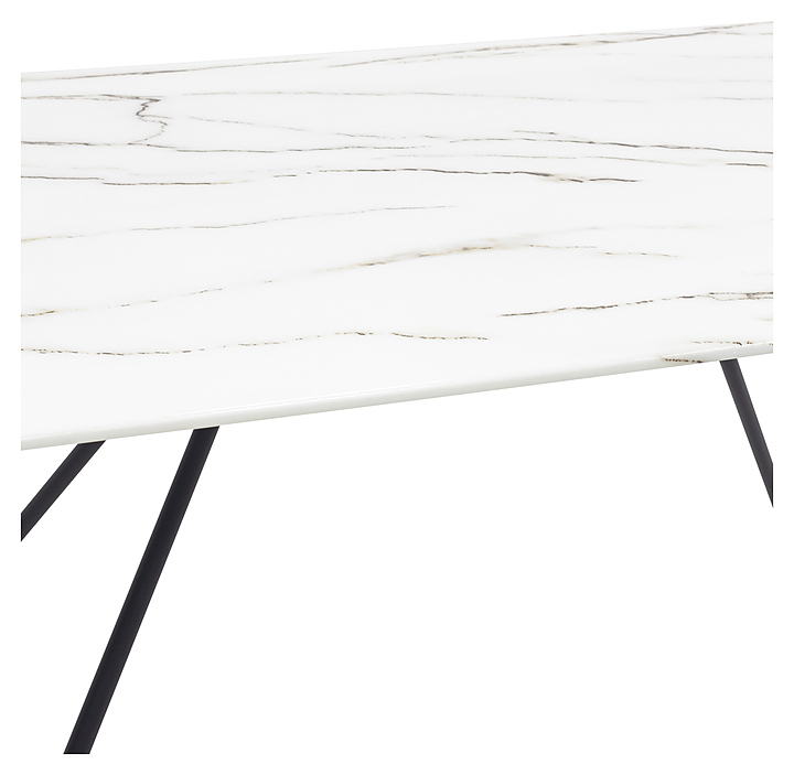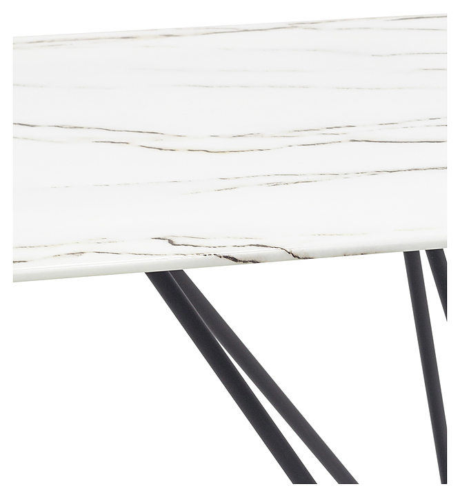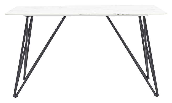 Обеденный стол Stool Group Сакраменто 140*90 белый стеклянный предназначен для использования на даче, дома, для кухни, а также в кафе и ресторанах. Модель выполнена в стиле минимализма. Столешница изготовлена из стекла с рисунком под мрамор, ножки - из металла. Дополнительные характеристики: