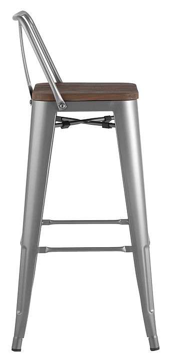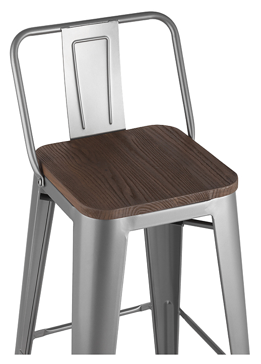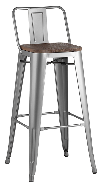 Стул барный Stool Group TOLIX WOOD со спинкой серебристый матовый