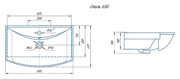 Раковина приобретается только в комплекте с тумбой Винтер 004320, OPADIRIS Омега 65 00-00003138, В комплект поставки входит хромированное кольцо для переливного отверстия.