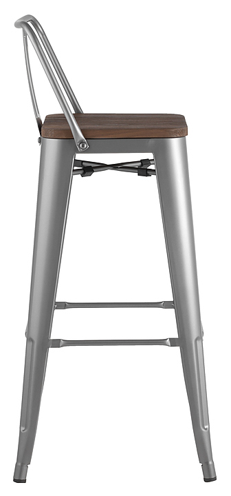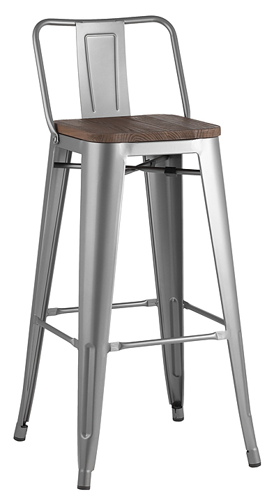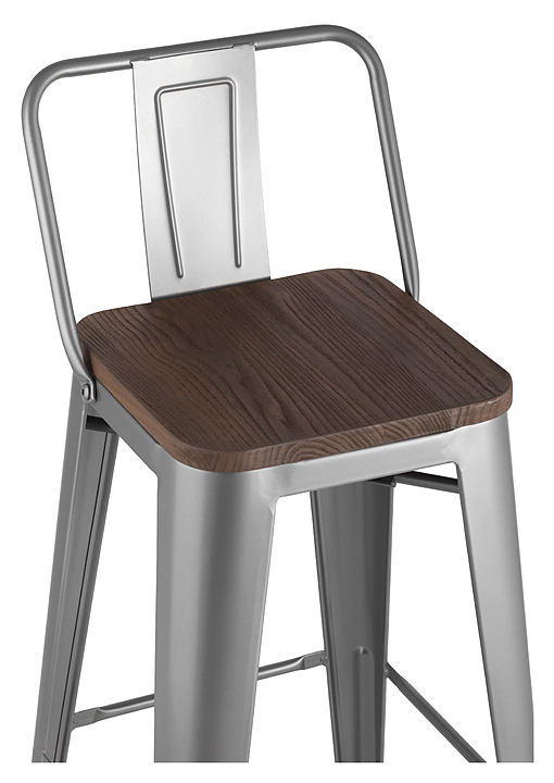Стул полубарный Stool Group TOLIX WOOD со спинкой серебристый матовый