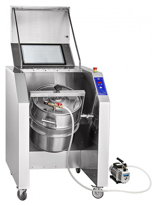 Вакуумный массажер-маринатор для мяса Abat ММ-50В используется используется на предприятиях общественного питания и торговли для маринования различных видов мяса, птицы и рыбы, кроме того мясомассжер значительно ускоряет операцию посола, улучшает вкусовые и физические показатели сырья. Процесс массирования и маринования происходит во вращающемся на небольшой скорости барабане, что позволяет приправам и специям проникнуть в волокна мяса, не нарушая структуру продукции. Модель оснащена электромеханической панелью управления, позволяющей устанавливать режимы работы, кнопкой аварийной остановки, съемным герметичным барабаном, фиксируемом с помощью прижимной траверсы, 2 передними поворотными колесами с тормозом и 2 фиксированными задними. Каркас, обшивка корпуса и детали выполнены из нержавеющей стали. В комплект поставки вакуумный насос серии BC-CP. Особенности: