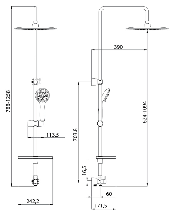 Душевая стойка LEMARK LM8802C без смесителя, с верхней душевой лейкой "Тропический дождь", хром