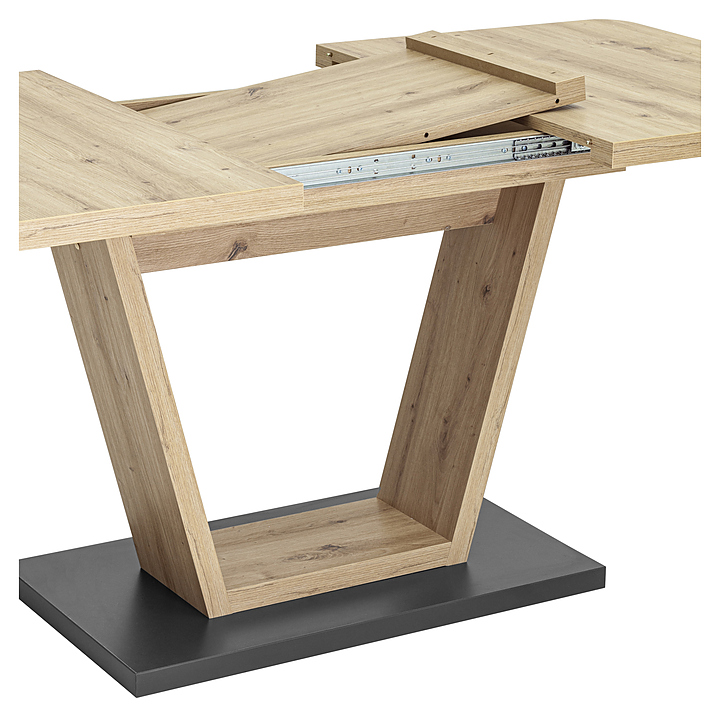 Обеденный стол Stool Group Vector 120-160*80 дуб/графит предназначен для использования на даче, дома, для кухни, а также в кафе и ресторанах. Модель выполнена всовременном стиле и оснащена синхронно-раздвижным механизмом со штопором. Стол изготовлен из ДСП. Дополнительные характеристики: