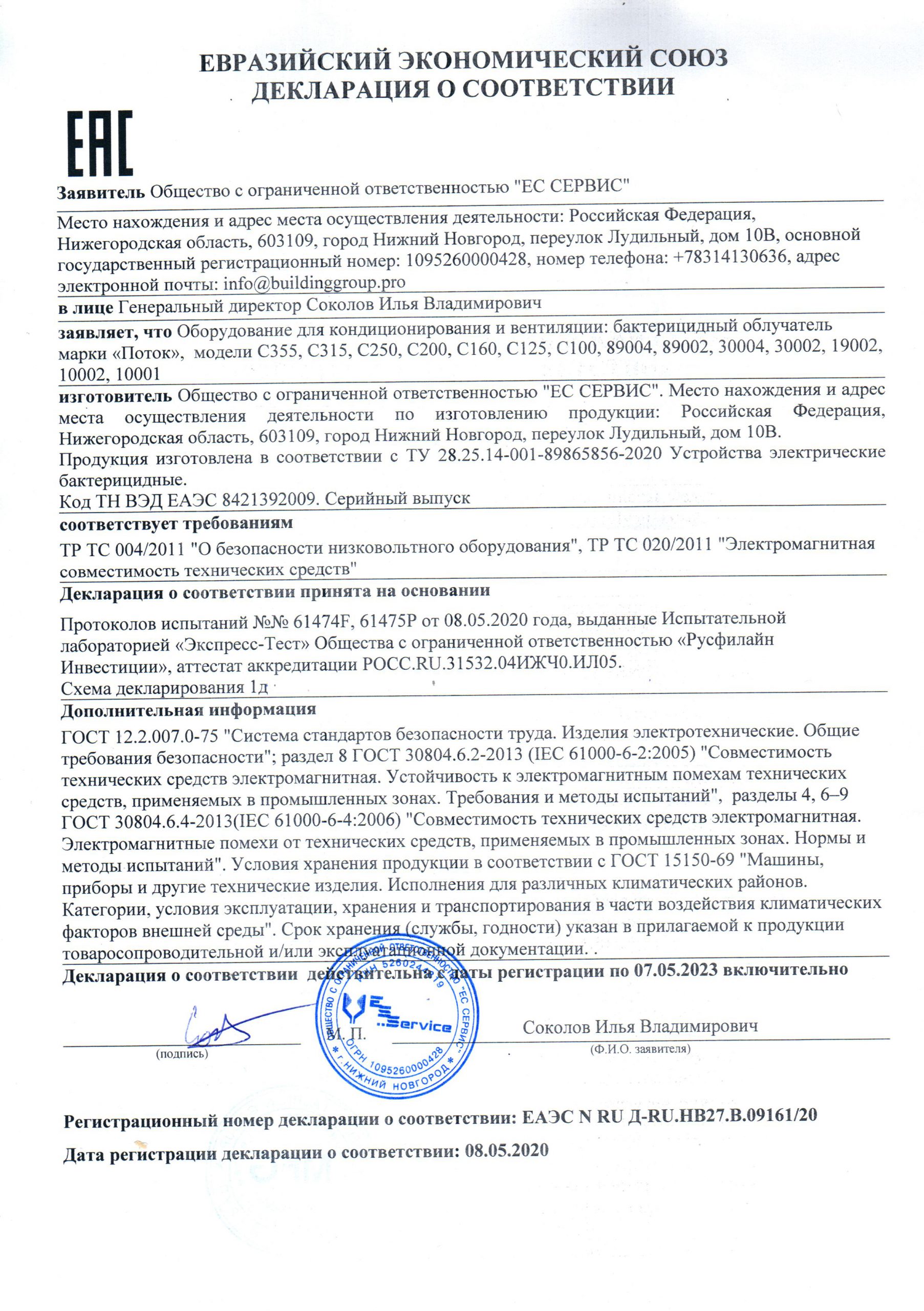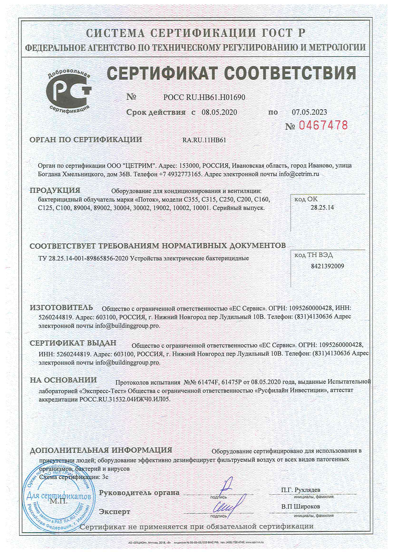 Бактерицидный ультрафиолетовый рециркулятор Поток 300/2 используется на дому, на предприятиях общественного питания и торговли, в офисах, образовательных и медицинских учреждениях, а также в других местах общественного пользования для обеззараживания воздуха в помещениях, то есть уничтожения практически всех известных вирусов, болезнетворных бактерий и грибов. Может использоваться в присутствии детей, ребёнок может трогать прибор, перемещать его с места на место. Модель оснащена устойчивой, широкой ножкой, прикрепленной к корпусу на саморезы, и встроенным Wi-Fi. Корпус выполнен из окрашенного металла. Особенности: