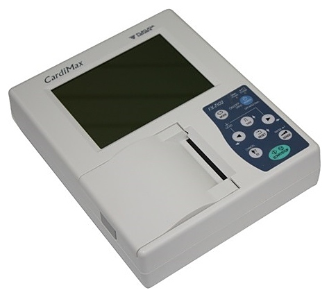 ​​Электрокардиограф Fukuda Denshi FX-7102 используется в домашних условиях и в учреждениях здравоохранения для измерения биоэлектрической активности сердца посредством регистрации и исследования электрических полей, образующихся при работе сердца. Модель оснащена сенсорным LCD жидкокристаллическим дисплеем с высоким разрешением.