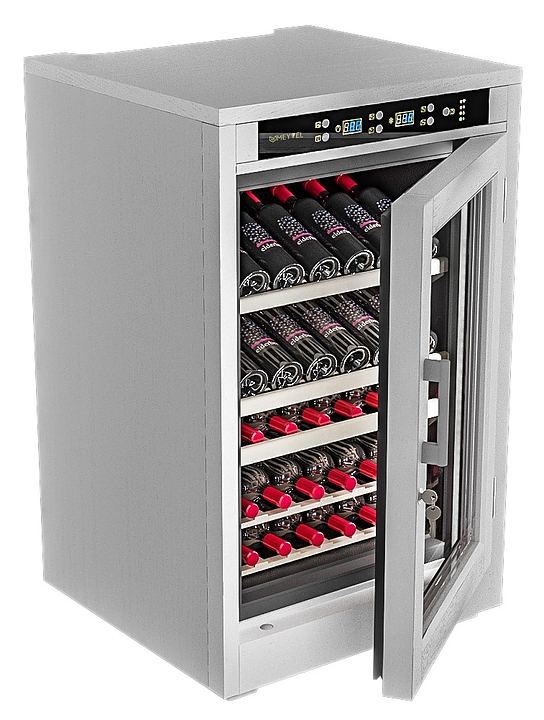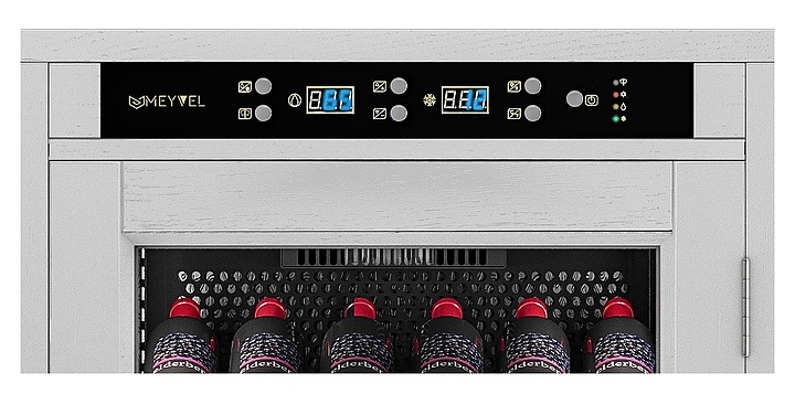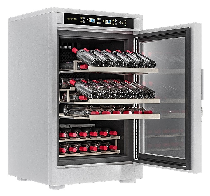 Винный шкаф MEYVEL MV46-WW1-M предназначен для демонстрации, хранения и создания оптимальных условий для сохранения всех вкусовых свойств вина в бутылках на предприятиях общественного питания, торговли, в барах, ресторанах, специализированных магазинах, частных домах или квартирах. Модель оснащена сенсорной панелью управления, электронным термостатом и светодиодной подсветкой. Корпус выполнен из обшитой деревом стали, дверь - из деревянной рамы и двойного стекла с защитой от ультрафиолетовых лучей, полки - из массива бука. Особенности: