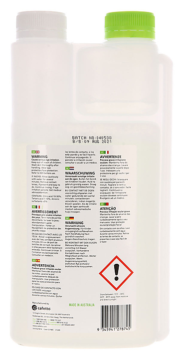 Средство Cafetto MFC Green предназначено для очистки молочных систем автоматических и супер-автоматических кофемашин при использовании молока с низким содержанием жира и жесткой воды, и для ежедневной промывки молочных контейнеров, питчеров и капучинаторов кофейных машин всех типов на предприятиях общественного питания и торговли, а также в офисах, гостиницах, частных домах и квартирах. Особенности:
