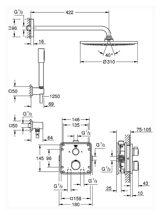 Комплект душевой Grohe GROHTHERM С RAINSHOWER COSMOPOLITAN 310