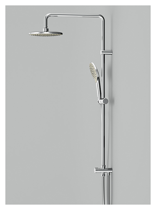Душевой комплект AM.PM Like F0780100 используется в ванных комнатах. Душевые системы AM.PM добавляют совершенно новое ощущение к приему душа. Коллекция Like отличается мягкими, обтекаемыми формами, а все отдельные элементы изделий идеально сбалансированы и отлично подчеркивают единую концепцию дизайна. Модель оснащена верхним и ручным душем, керамическим картриджем, стойкой. Изделие выполнено из высококачественной латуни, которая отличается прочностью, долговечностью и устойчивостью к перепадам температур. В комплект поставки входят верхний и ручной душ с держателем, стойка, шланг. Особенности: