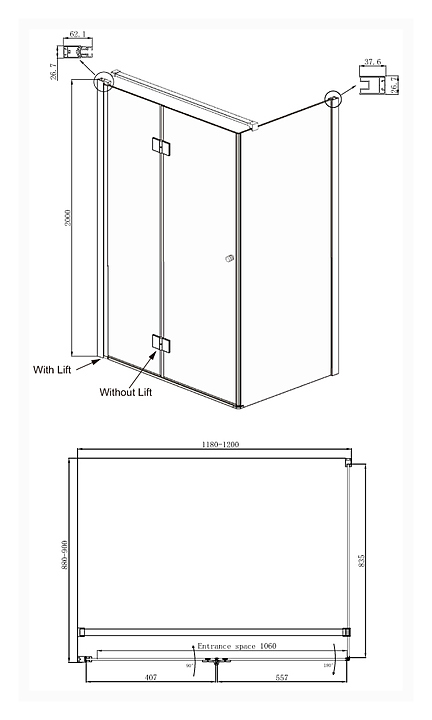 Уголок душевой Ambassador DIAMOND 12011108L 120х90 см
