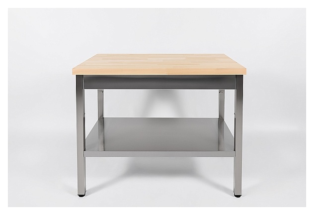 Кондитерский стол Restoinox СПК-18/7-П предназначен для разделки и обработки пищевых продуктов, а также для расстановки и хранения посуды и кухонного инвентаря на предприятиях общественного питания и торговли. Модель оснащена сплошной полкой, усиленной ребром жесткости из нержавеющей стали Aisi 430. Ножки выполнены из квадратной трубы 40х40 мм из нержавеющей стали Aisi 430, полка - из нержавеющей стали Aisi 430, столешница - из бука. Особенности: