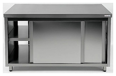 Производственный стол Restoinox СПСЗК-8/7 серии 700 предназначен для обработки продуктов питания, раскатки теста и хранения кухонного инвентаря, также для размещения малогабаритного оборудования на предприятиях общественного питания и торговли. Модель оснащена регулируемыми по высоте опорами и сплошной полкой. Ножки выполнены из квадратной трубы 40х40 мм нержавеющей стали Aisi 430, корпус, рабочая поверхность и полка - из нержавеющей стали Aisi 430, столешница усилена листом ЛДСП. Особенности: