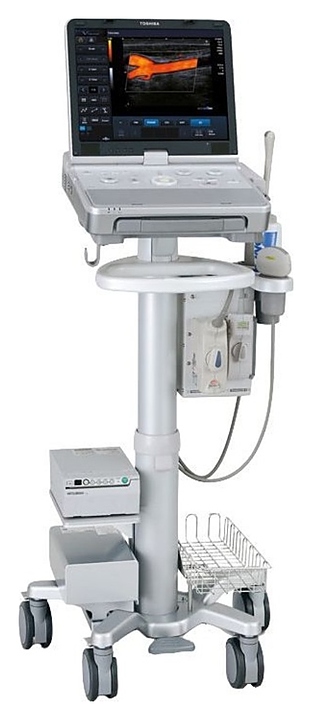 Аппарат УЗИ Canon Viamo используется в различных учреждениях здравоохранения для проведения ультразвуковой диагностики, то есть получения информации о расположении, форме, размере, структуре, кровоснабжении органов и тканей человека. Модель оснащена цветным монитором с автоматической регулировкой яркости. Особенности: