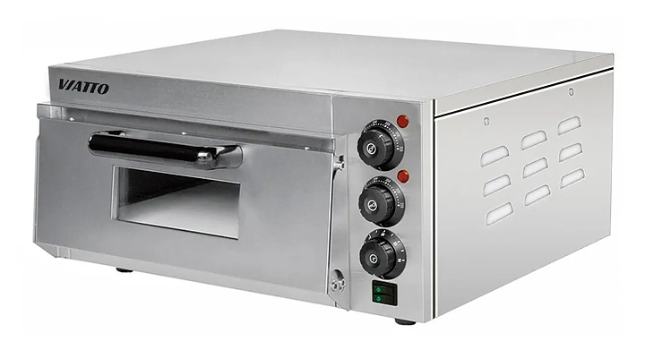 Печь для пиццы VIATTO EP-1T используется на предприятиях общественного питания и торговли. Модель оснащена дверцей со смотровым окном. Корпус выполнен из нержавеющей стали. Особенности: